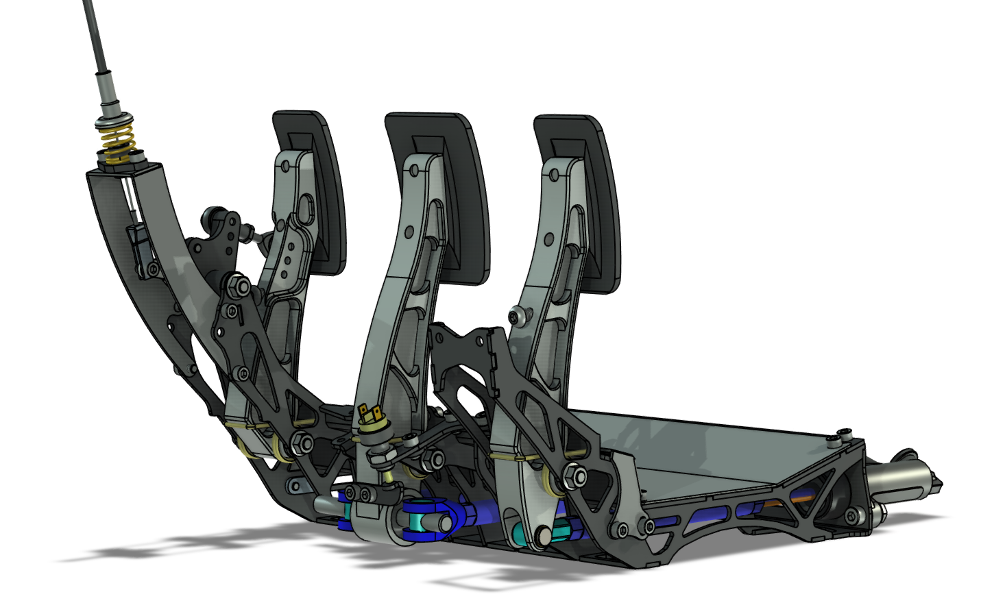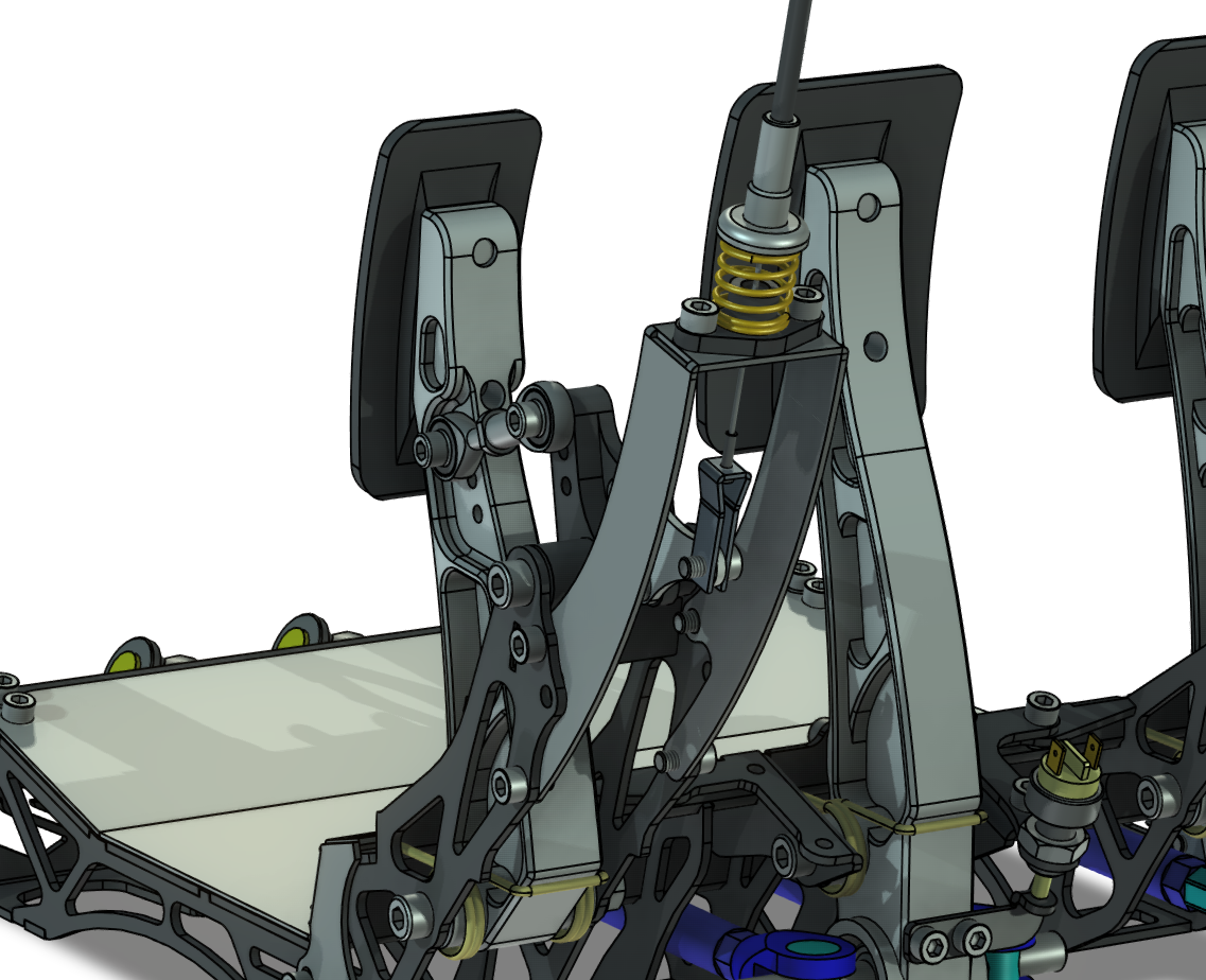 Pretensioned lubrication free bushings on pedals. Resistant to moisture and dirt